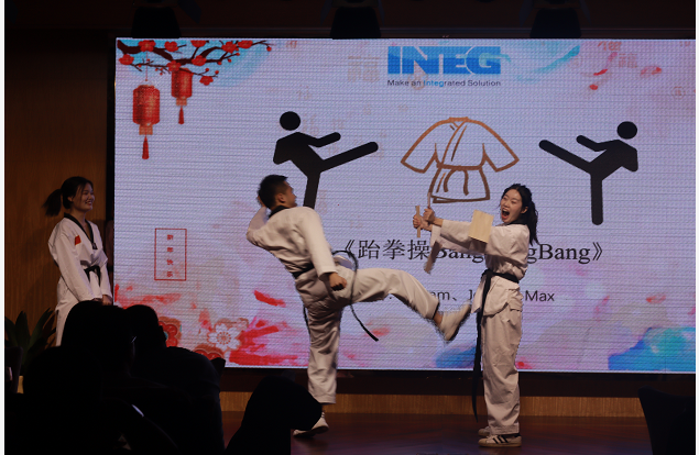 不得不說(shuō)我們INTEG佳人們,太美了叭,怪不的說(shuō)“城門外危難之間~英雄一怒為紅顏~就只看了你一眼,便決定了永遠(yuǎn)~”下面有請(qǐng)倉(cāng)庫(kù)部的Elvis給我們帶來(lái)一首好聽(tīng)的歌曲《醉千年》 欣賞完了旗袍秀和歌曲想不想再來(lái)一個(gè)勁爆的節(jié)目。跆拳踢木板+跆拳舞BangBangBang